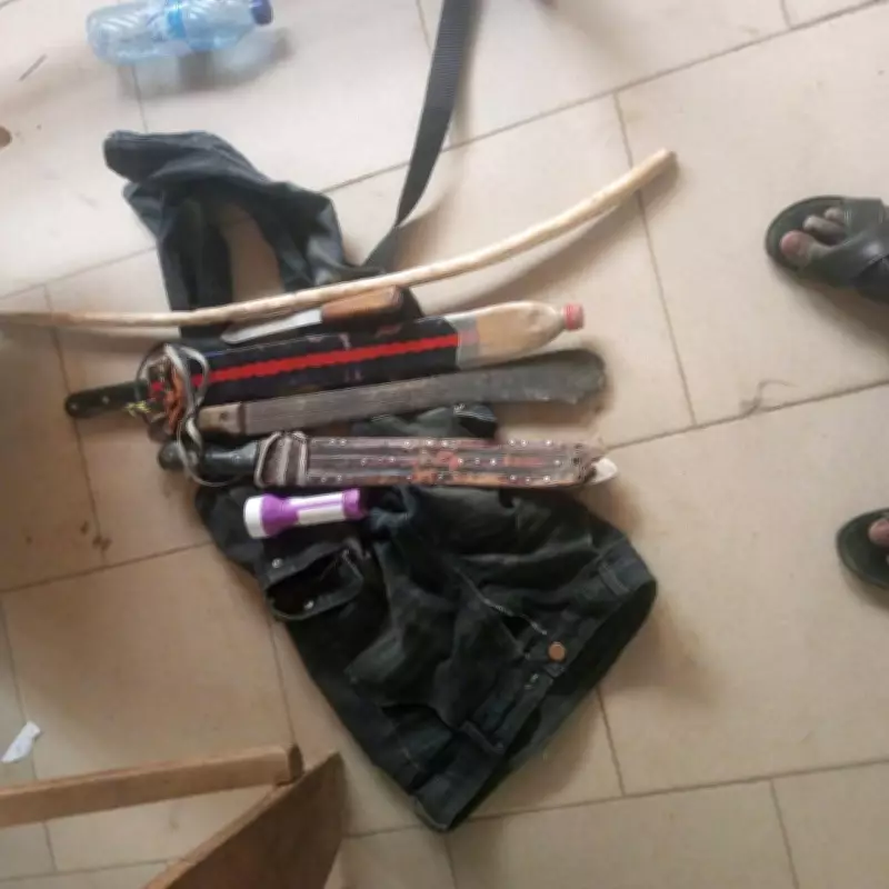During the arrest, authorities recovered several items from the suspects, including three cutlasses, two sticks, and a torchlight. These items are believed to be connected to the crime and are being examined as part of the evidence-gathering process.