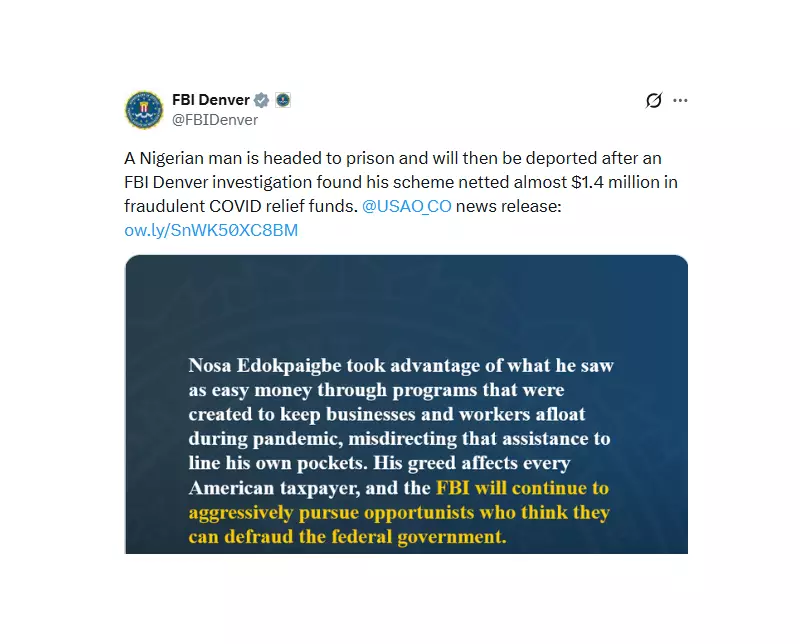 Marv Massey, Acting Special Agent in Charge of the FBI Denver field office, echoed this sentiment: "Nosa Edokpaigbe took advantage of what he saw as easy money through programs that were created to keep businesses and workers afloat during the pandemic, misdirecting that assistance to line his own pockets. His greed affects every American taxpayer, and the FBI will continue to aggressively pursue opportunists who think they can defraud the federal government."